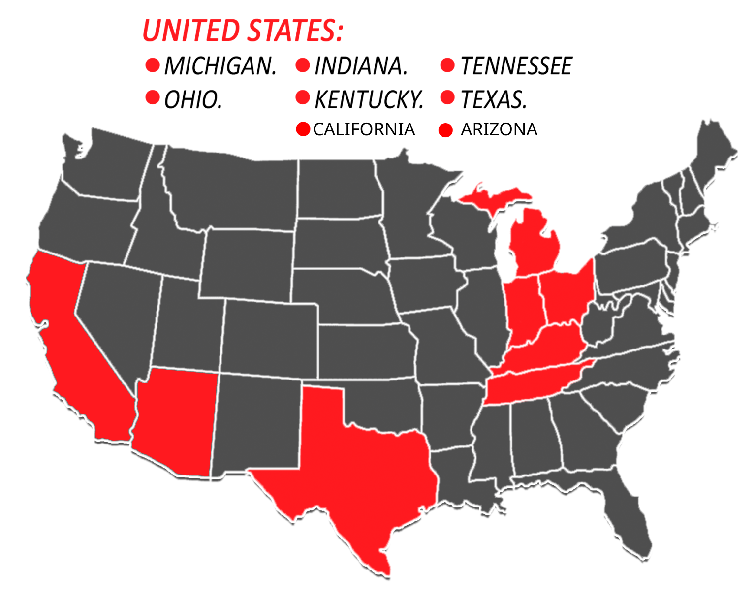 Estamos situados en las zonas más importantes del norte de EE.UU. y la frontera sur con México.